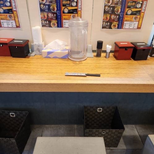 お1人様やカップルでもお気軽に利用しやすいカウンターのお席は6席ございます!木のぬくもりが感じられるカウンターのお席はラーメンを楽しむのにピッタリなお席!当店自慢の豚骨とじっくり向き合って楽見たいという方におすすめ♪